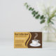 © Sunny Mars Designs. Beige und braune Wirbel Coffee Tasse Custom Cafe Business Card Template - Diese trendigen, stilvollen, modernen beruflichen Kaffeehauskarten zeigen eine Dampfkasse Schwarzkaffee in einer Kaffeetasse aus weißem Porzellan oder einer Kaffeemaschine auf einem braunen runden Tisch vor beigem Hintergrund. Personalisieren Sie diese Karten, indem Sie ihnen Ihren eigenen Text hinzufügen.