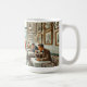 Ideal für den Kaffee und Reisende. Die Aquarellmalerei vereint zeitlose Eleganz und die lebendige Atmosphäre eines Caffè in Rom. Im traditionellen Interieur des Cafés finden Sie Marmortheken, dunkle Holzakzente und Wände mit Vintagen Fotografien. Ein Barista in weißem Shirt und schwarzem Schlips betreibt eine glänzende Chrom-Espressomaschine. Ein älterer Gentleman in einem Tweed-Blazer liest eine Zeitung, während er Espresso an einem kleinen Tisch schlängelt, während eine Frau in einem roten Schal ihren Cappuccino neben ihrem Skizzenbuch rührt. Eine Familie bewundert goldene Croissants und bunte Kekse, die in einem Glaskoffer ausgestellt sind. Ein Kellner trägt ein Tablett mit Keramik Becher zwischen den Tischen. Durch die Türe strömt warmes Sonnenlicht, das Muster auf dem Fliesenboden ausstrahlt, und im Freien tragen die Kopfsteinpflasterstraßen Roms und die gedämpften Tönen der Fußgänger zum lebendigen und dennoch eleganten Charme dieses eleganten Cafés bei.