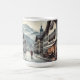 Perfektes Geschenk für den Reise- und Kaffeeliebhaber. Ein Aquarellbild mit einem stimmungsvollen Blick auf die Straße in einem kleinen Café in Interlaken, Schweiz. Die Szene fängt ein malerisches und lebhaftes Café ein, in dem die Einheimischen ihren morgendlichen Kaffee vor dem Hintergrund weit entfernter Berge genießen. Die Farbpalette ist gedämpft, mit weichen Grau-, Blues- und Erdtönen, die die ruhige und stimmungsvolle Atmosphäre verstärken. Menschen in warmer Kleidung wirken entspannt und inhaltlich, perfekt in die ruhige Schweizer Umgebung integriert. Diese Darstellung hebt nicht nur den Charme des Cafés hervor, sondern auch die einzigartige lokale Atmosphäre von Interlaken.