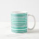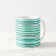 La tasse de café est affichée dans une impression rayée turquoise et couleur aqua. Customisez cet article ou choisissez un autre style de mug ou achetez tel quel.