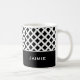 La tasse de café en céramique est présentée avec une impression d'art noir et blanc. Customisez cet article et changez le nom de l'exemple en votre nom.