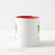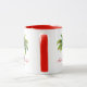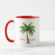 La tasse de café est en blanc avec un intérieur rouge, avec un imprimé de palmiers de vacances. Un texte dit Feliz Navidad. Customiser cette tasse ou acheter tel quel.