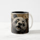 This explosive and dynamic illustration captures the moment a panda experiences an intense caffeine rush. With wild, wide-open eyes and a shocked expression, the panda bursts forth from a sea of coffee beans. The graphic, comic-book art style, complete with energetic lines radiating in the background, perfectly conveys a sense of chaotic, coffee-fueled energy. This isn't your typical calm panda; this is panda-monium in a coffee cup!