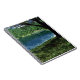 Un endroit calme pour se reposer, sous un arbre sur la rive herbeuse d'un lac bleu profond, regardant les reflets des nuages et des arbres dans l'eau ondoyante. Une scène 3D créée dans Vue.