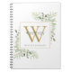 Cahier élégant de nom de monogramme de feuilles de verdure à l'aquarelle avec un monogramme doré initial. Conçu par Thisisnotme©