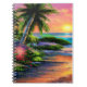 Cahier de plage tropicale, coucher de soleil sur l