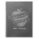 Un bloc-notes en spirale avec l'illustration inspirée de la craie d'une pomme recouverte d'une bannière qui dit "ENSEIGNANT DE QUATRIÈME CATÉGORIE" sur un arrière - plan inspiré par un tableau de bord. Personnalisez avec votre nom.