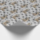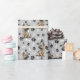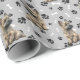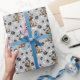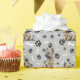 Ein Bild eines bezaubernden Cairn Terrier Dog ist das Muster auf diesem jeden Anlaß Geschenkpapier. Der Hund sitzt inmitten eines Musters aus schwarzen Pfoten und weißen Knochen und wird auf einem hellgrauen Hintergrund wiederholt.