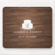Cake Monogram Logo in Weiß auf Braunholz Mousepad