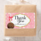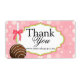 © 2013 Sozialite Designs. Whimsical Schokoladenkuchen Pop mit rosa Bogen Design danke Ihnen, dass Sie Etiketten verschicken. Der Hintergrund hat ein rosa Polka-Dot-Muster.