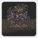 pegatina cuadrada que pega contigo special para ocasiones y prorciones hecha con textura negra y flores de color variados con purpurina multicolor Puedes usarla para un envío special.