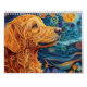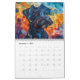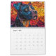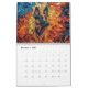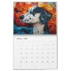 Ce calendrier présente des illustrations colorées de différentes races de chiens dans le style de l'art de la découpe en papier.
