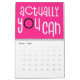 Bon calendrier de vibes avec un message positif d'élévation pour chaque mois de l'année dans la grande typographie funky. Les couvertures avant et arrière ont un arrière - plan blanc avec des lettres roses chaudes avec une touche de noir, et à l'intérieur des arrière - plans roses chauds avec typographie blanche avec des reflets roses chauds et noirs. Vous pouvez modifier les couleurs de l'arrière - plan si vous le souhaitez via l'option Cliquez pour Customiser plus.