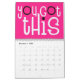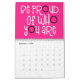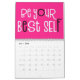 Bon calendrier de vibes avec un message positif se sentir bien pour chaque mois de l'année dans la grande typographie funky. Les couvertures avant et arrière ont un motif en diagonale de couleurs arc-en-ciel vives, y compris lilas, jaune, blanc et corail avec lettrage rose chaud avec une touche de noir, et à l'intérieur arrière - plans roses chauds avec typographie blanche avec points chauds rose et noir. Vous pouvez modifier les couleurs arrière - plans roses à l'intérieur si vous le souhaitez via l'option Cliquez pour Customiser plus.