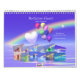 Calendrier unique avec de belles oeuvres d'art 3d avec des coeurs de pierre de naissance flottant sur l'eau avec des arcs-en-ciel et des ballons de célébration.