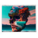 A skull head has been completely colored in abstract style to bring you into the world of creativity and surreal design, in the style of photo-réaliste landscapes, tropical landscapes, futuristic réaliste, pixelated réaliste m, light crimson and sky-blue, surréaliste dreamscapes