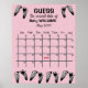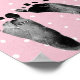 Empreintes de bébé noires sur fond à pois rose et blanc pour jeu de Baby Shower.