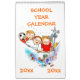 Calendrier de l'année scolaire en une page orange pour les enfants du 20août au 20juillet avec texte personnalisable en première page. Les événements et les vacances aux Etats-Unis sont ajoutés.