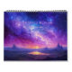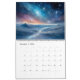 Each month features a vivid sci-fi landscape filled with luminous nebulae, distant planets, cosmic horizons, and imaginative extraterrestrial terrains. The artwork shifts with the seasons—from icy blue worlds in winter, to warm planetary vistas in summer, to dramatic nebula skies in autumn—creating a visually immersive journey through 2026.