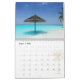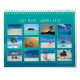 Paradis sur un calendrier ! Ajoutez votre touche spéciale à ce calendrier personnalisé élégant en remplaçant les douze photos de plage tropicale par vos favoris ! Ce modèle de calendrier photo de deux pages inclut toutes les douze de vos photos à l'arrière pour une référence facile; toutes sont encadrées en turquoise et sont présentées sur un arrière - plan de vague artistique. Personnalisez facilement le titre du calendrier (qui dit : "Vis plus, t'inquiète moins" ), le nom et l'année en utilisant les modèles fournis. Un palmier tropical artistique aux noix de coco orne chaque page mensuelle.