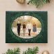 Un beau calendrier cadeau de Noël avec une couronne verte profonde dessinée à la main encadrant votre photo sur la couverture avec des photos de fond plein sur chaque page et couverture arrière.