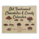 Ce calendrier présente des illustrations vintages de couleurs de chocolats et de bonbons à l'ancienne datant de 1909.