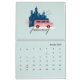Design élégant et chic de calendrier familial appelé "Let's Roll! - Que les Aventures commencent". Calendrier amusant explorant différents événements, occasions et voyages tout au long de l'année. Chaque mois présente notre chic van rétro rose vintage dans différentes scènes pour les saisons. Chaque petit détail est capturé dans ce pittoresque calendrier de voyage familial. Caractéristiques Maisons roses décorées dans des décorations festives, arbres couverts de neige rose, showman festif, lampadaire, enfants chantant et jetant des boules de neige, camping, excursions sur la route, vie sur la plage, Halloween, vacances enneigées & vie quotidienne. Le calendrier est personnalisé avec nom de famille et monogramme affiché sur la fourgonnette vintage rose tout au long du calendrier et de l'année. Toutes les oeuvres contenues dans ce calendrier chic de voyage de van vintage sont dessinées à la main par Moodthology Papery.