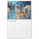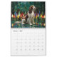 A dog calendar featuring 3d images of twelve medium sized dogs with aesthetic backgrounds.