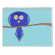 Une peinture colorée de toutes sortes d'oiseaux, dont des hiboux aux couleurs vives, rend ce calendrier amusant créatif et unique.