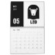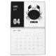 Un calendrier créatif comprenant 12 signes de zodiaque védique dans des motifs géométriques inspirés de leur signification originale : animal, oiseau, créature marine, ou forme humaine, disposés en mois selon l'astrologie védique traditionnelle.
