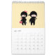 De mignons ninjas de dessins animés circulant dans leurs affaires sur les pages de ce calendrier.