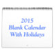 En gros 2015 Calendrier vierge Avec vacances avec fil bleu, vous pouvez trouver du texte personnalisable bleu à la première page et des jours fériés et des événements aux États-Unis et au Canada.