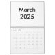 Calendrier vierge simple pour 2025 avec texte noir modifiable (mois)