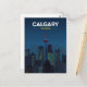 Illuminate your mail with this stunning vintage-style postcard, featuring the iconic Calgary Tower rising above the city skyline at night! The bold, retro illustration captures the vibrant, cosmopolitan feel of Calgary, Alberta, Canada, with brightly lit skyscrapers set against a deep blue, starry night sky. Perfect for fans of striking cityscapes, modern graphic design, or anyone who loves the energy of the "Stampede City" after dark.