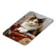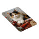 Flexible Magnetkunst mit einem Gemälde einer schönen Kalico Katze in einer Winterlandschaft umgeben von roten Beeren, Kiefernspießen und gemütlichen Stoffen.