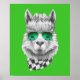 Dieses Design zeigt ein Lama-Portrait mit Sonnenbrille und schwarz-weißem Halsband.