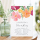 Die eleganten Probe-Dinner-Einladungen mit floralen Blume in den Farben Pfirsich, Rosa und Violett in einer Kaskade. Personalisieren Sie mit Ihrer Probe Dinner Party Details in einem schicken Mix aus Block, Serif und Kalligraphie Schriften. Umfasst Platz für die Zeremonie-Probe und für das folgende Fest oder Abendessen.