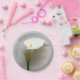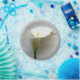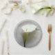 Foto einer lieblichen weißen Calla-Lilie auf einem altmodischen Skript-Hintergrund, Teil einer Reihe von passenden Hochzeitsartikeln
