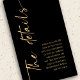 Kalligrafischer Black Gold QR Code Hochzeitsdetails Klassische Schwarz-Gold-Eleganz. Eine praktische Möglichkeit für Ihre Gäste, alle Informationen, die sie benötigen, auf Ihrer Hochzeitswebsite zu sehen, indem Sie einen QR-Code scannen. Die Details sind im Set elegante Kalligraphie gedreht und zu den links, mit Ihrer Botschaft rechts. Personalisieren Sie einfach die Erholung des Textes auf Ihre eigenen Daten und ersetzen Sie den QR-Beispielcode auf der Rückseite mit Ihrem eigenen.