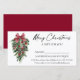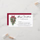 Moderne Elegante Kalligraphie Tinte Aquarell Pines Winter Greenery mit Burgundy Red Ribbon Bow Weihnachtsschmuck, Pine Cones und Holly Berries Merry Christmas Business Geschenkzertifikat mit Envelope. Rot