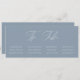 Elégante calligraphie blanche "Top Table" graphique, carton bleu mariage poussiéreux.