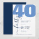 Elégante minimaliste personnalisable invitation d'anniversaire de typographie bleue. Couleur arrière - plan blanche. Joignez-vous à nous pour célébrer les 4-0 pour notre bien-aimé John. Nous allons lancer une fête qui sera une explosion, et nous voulons que vous soyez là. Préparez-vous à danser la nuit.