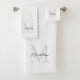 Calligraphie de script minimal Noir Blanc Monogramme Ensemble de serviettes de bain