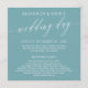 Un programme de mariage élégant avec des polices élégantes et un script de calligraphie délicat en bleu et blanc turquoise. Ajoutez votre horaire et les noms de votre fête de mariage ! Propre, simple, intemporel et élégant.