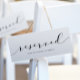 Mariage Réservé Signet Modèle - Calligraphie moderne : Accrochez ces modernes réservés aux panneaux des chaises, ou placez simplement à plat sur un siège de chaise. Ce panneau réservé mariage présente un script de calligraphie moderne tourbillonnant et animé. Changez les couleurs du texte à tout ce que vous voulez! Posez des trous dans le haut de chaque côté et accrochez-vous aux chaises mariages ou à la patte...ou se pencher sur une chaise le long de la décoration de la table.