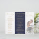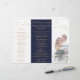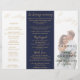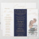 Ce programme de mariage Tri-fold comprend des lettres en calligraphie dorée et un arrière - plan bleu marine avec une photo. Personnalisez avec vos détails de mariage et s'il vous plaît trouver des designs correspondants de mon magasin "DreamHut".