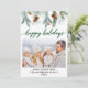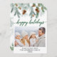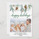 Modernes, elegantes Kalligrafie-Script, Aquarellfarben-Kiefernzapfen, Happy Holidays Family Foto Holiday Card - Grüne Schrift