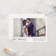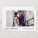 Nos annonces mariages chic et modernes sont la meilleure façon de faire connaître à vos amis et à votre famille votre évènement, cérémonie secrète ou mariage privé! Une simple bordure blanche encadre votre photo mariage horizontale préférée, avec "juste marié" en dessous d'élégantes lettres de script de calligraphie moderne, et vos noms, date mariage et emplacement mariage. Ajoutez une deuxième photo au dos avec une note personnelle — parfaite pour remercier les amis et la famille, leur faire connaître votre cérémonie, ou annoncer une réception ou une fête à venir.