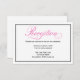 Cette élégante carte de détails de réception de mariage manuscrite rose, noir et blanc fait un ajout sophistiqué à votre suite mariage. Ce design chic se coordonne avec notre Suite Mariage Chrétien Contemporain Pink and White Faith Hope and Love, disponible à Graphic Suite, seulement sur Zazzle.