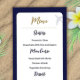 Calligraphy Blue Boarding Pass Wedding Menu Menükarte